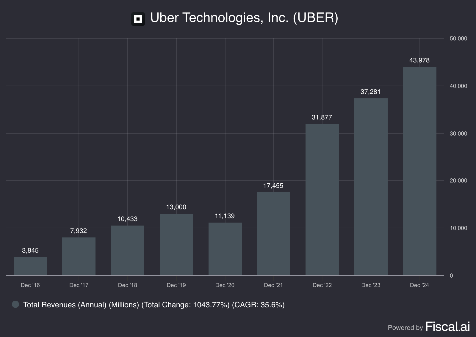 The poster boy of convenience. In 2024, Uber logged 3.1 billion trips, roughly equating to 33 million per day. Uber bundles ride-hailing, grocery and restaurant delivery all in one app, capturing a user whether they leave the sofa or double-down on it.