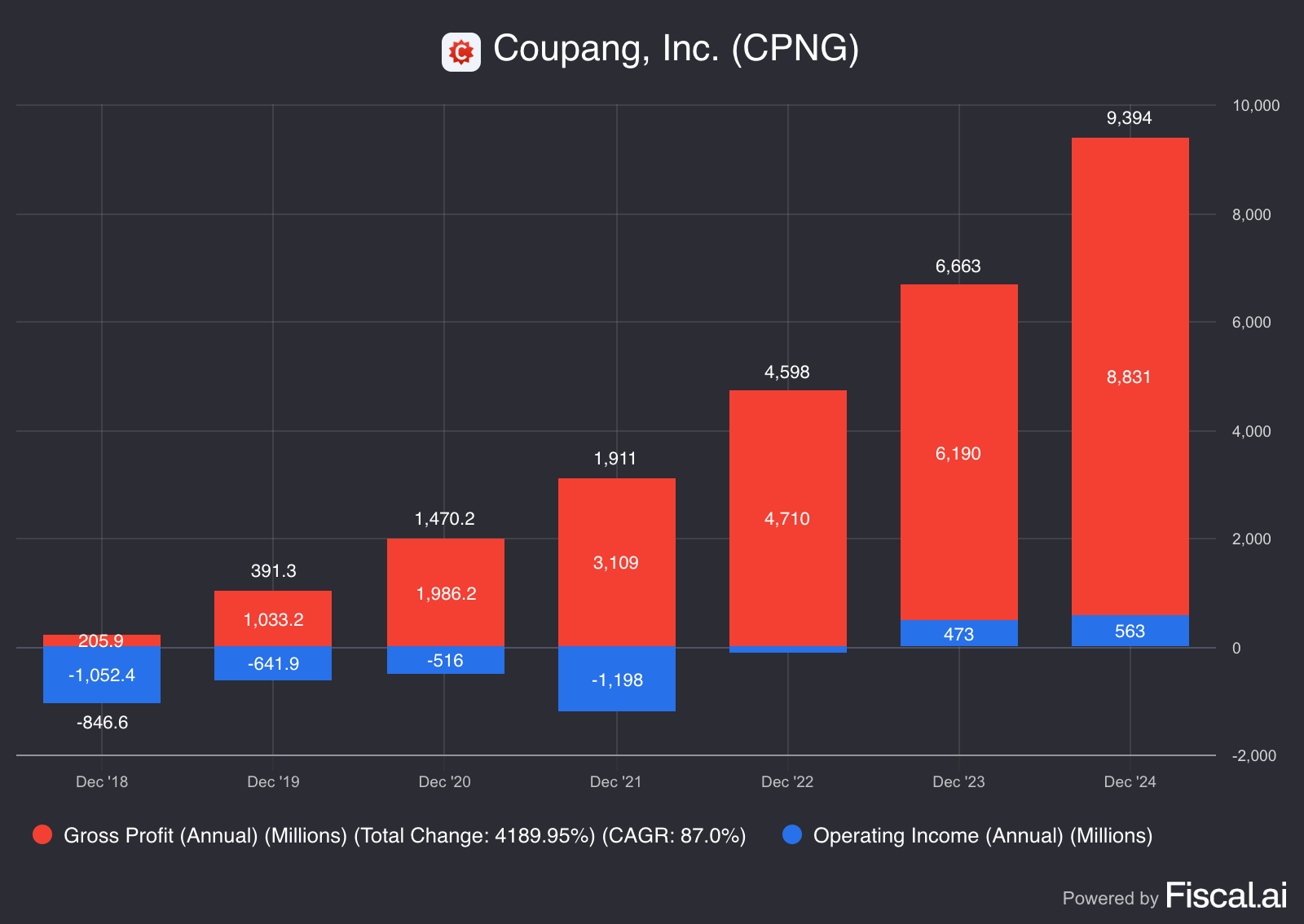 It has trained South Koreans to expect anything ordered before midnight to land on the doorstep by breakfast, no tip, no delivery fee, no reason to leave the apartment. In the trailing twelve-month period, Coupang printed $1B in free cash flow, and is merely at the inflection point of profitability.