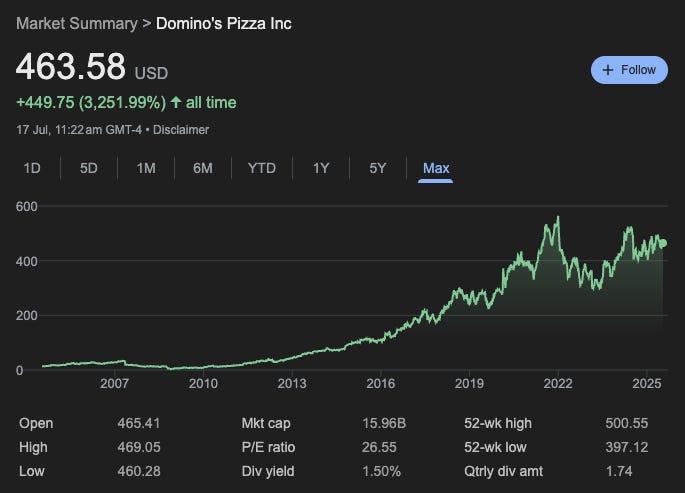 Domino’s remains one of the favourite pizza brands of all time. However, the business isn’t really a pizza chain, it is a logistics and software business that happens to sell 2,000 calorie dinners.