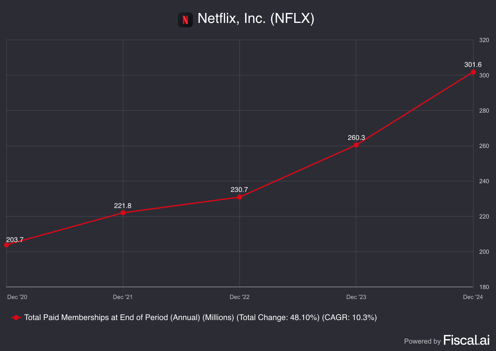 Netflix now counts over 300 million paying accounts and an estimated 500 million households thanks to shared profiles.
