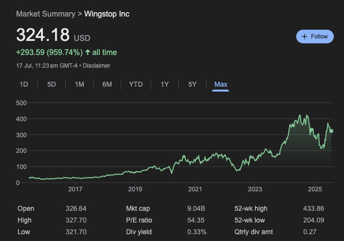Since 98% of restaurants are franchised, Wingstop captures high-margin royalty income without tying up its own balance sheet in real estate. With runway to triple its current 2,200 locations and a strategic ambition to enter the global top 10 restaurant ranks, Wingstop is a pure play to the calorie trend, backed by a proven, asset-light growth engine.