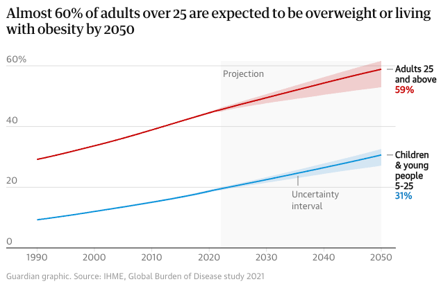 Nearly 3 in 4 US adults are now overweight or obese. By 2030, it’s projected that one billion people globally will be living with obesity. By 2050, more than half of adults worldwide will be overweight or obese.