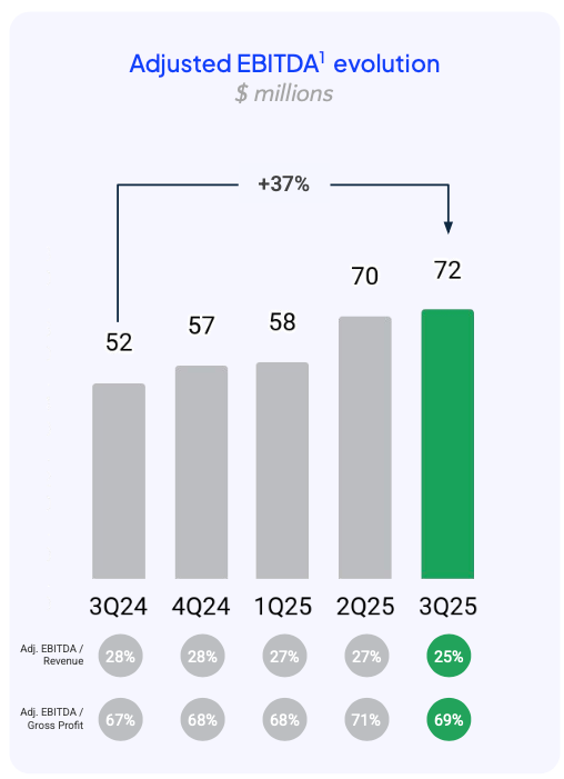 Adj. EBITDA: $70M (+37% YoY) ✅