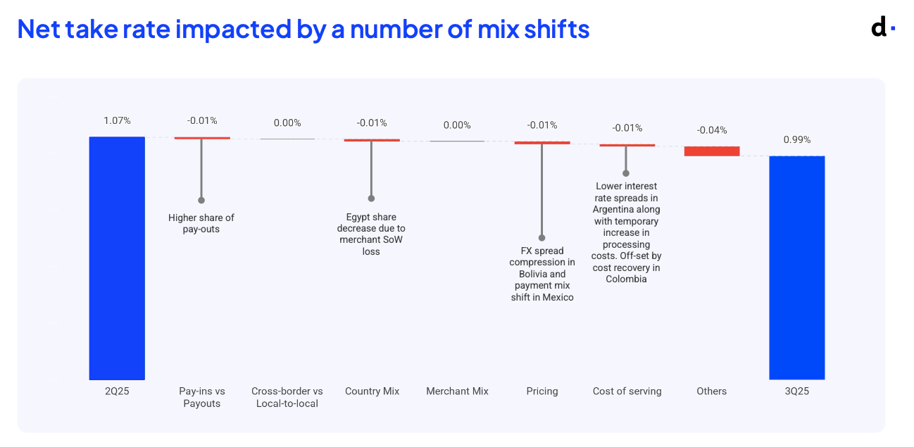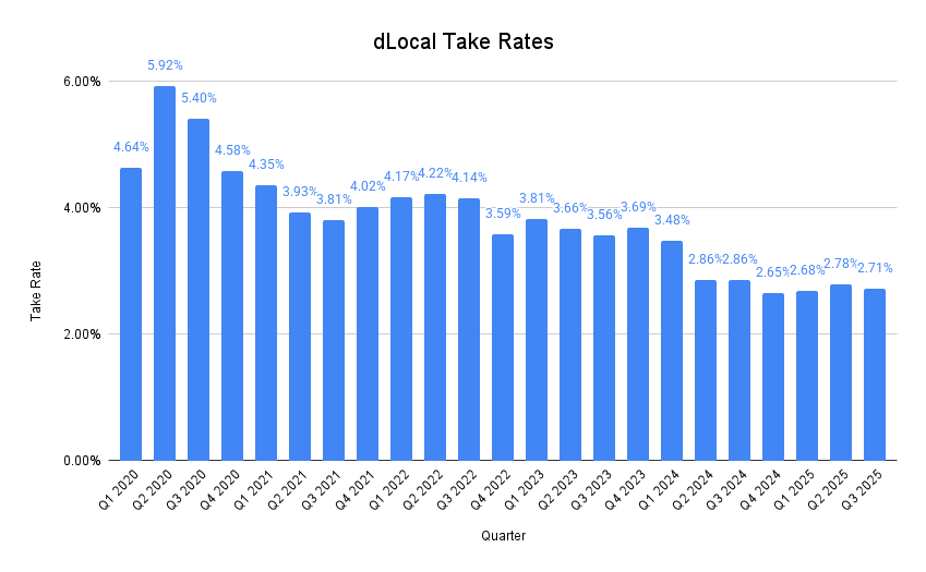 Net take rates are arguably more important as they reflect the true economics, and exactly how much dLocal keeps after paying PSP partners, network fees, payout rails, BNPL revenue share, etc.