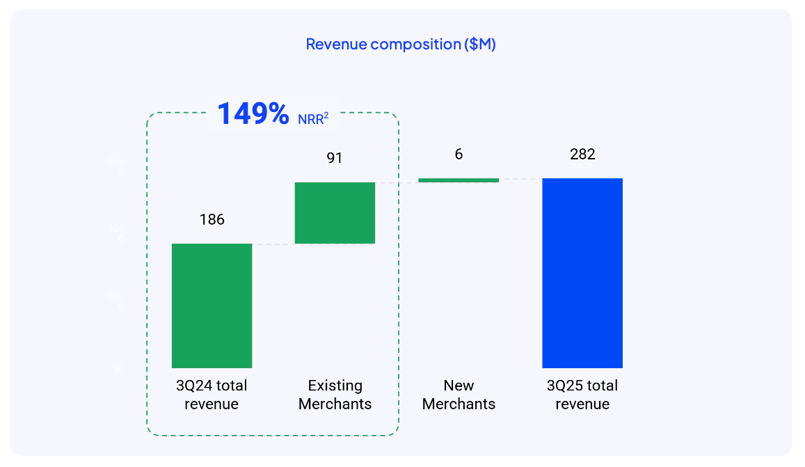 This behaviour is exactly what we want to see in a high NRR enterprise model. As existing merchants expand and new merchants ramp up, the revenue mix becomes less dependent on any single customer, even though the absolute volumes of the largest merchants continue to rise.