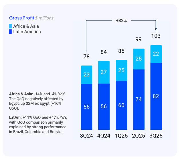This is the cleanest financial measure of dLocal’s unit economics and is far less volatile than take rates because it captures real economic spread. This is the number that ultimately drives operating leverage and free cash flow. Unlike take rates, gross profit cannot be distorted by a single large low-priced merchant or an FX swing.