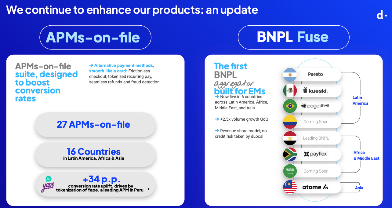 Last quarter, dLocal shared its deployment of SmartPix in Brazil, launching of BNPL Fuse and partnerships on the stablecoin remittances front.