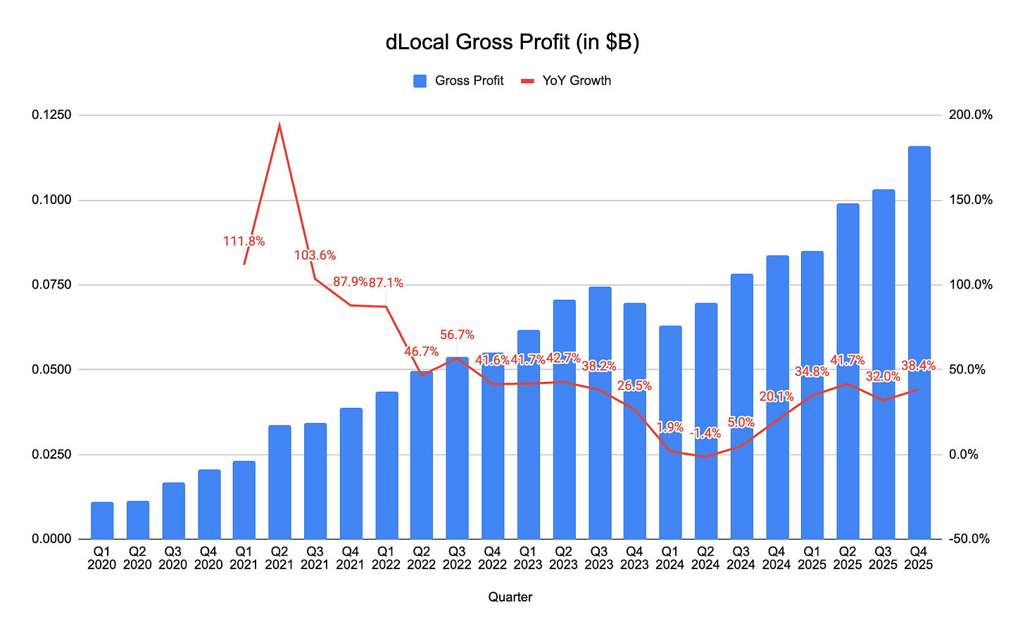 Again, dLocal saw YoY and QoQ growth across all 6 key metrics. Management also added a new metric that they will be disclosing (operating profit). On that basis, operating profit grew by 48% YoY.