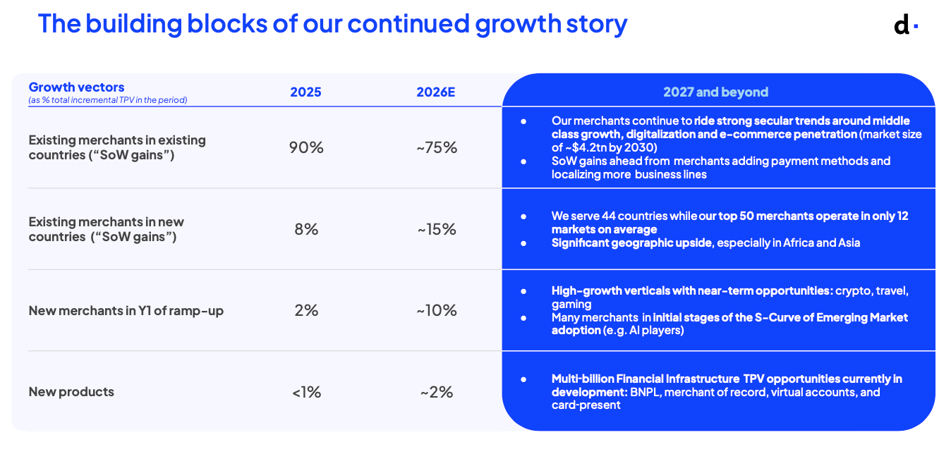 It also foresees more new merchants in 2026 across high-growth verticals such as Crypto, Travel and Gaming. New products are expected to contribute slightly towards TPV growth, in areas such as BNPL, merchant of record, virtual accounts and card-present.