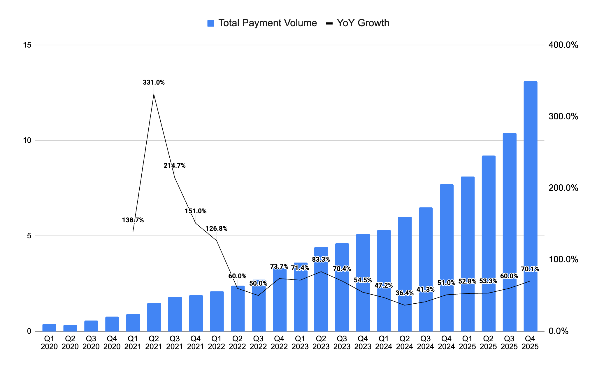 In Q4 2025 alone, TPV on a QoQ basis grew by more than the prior 3 quarters combined.
