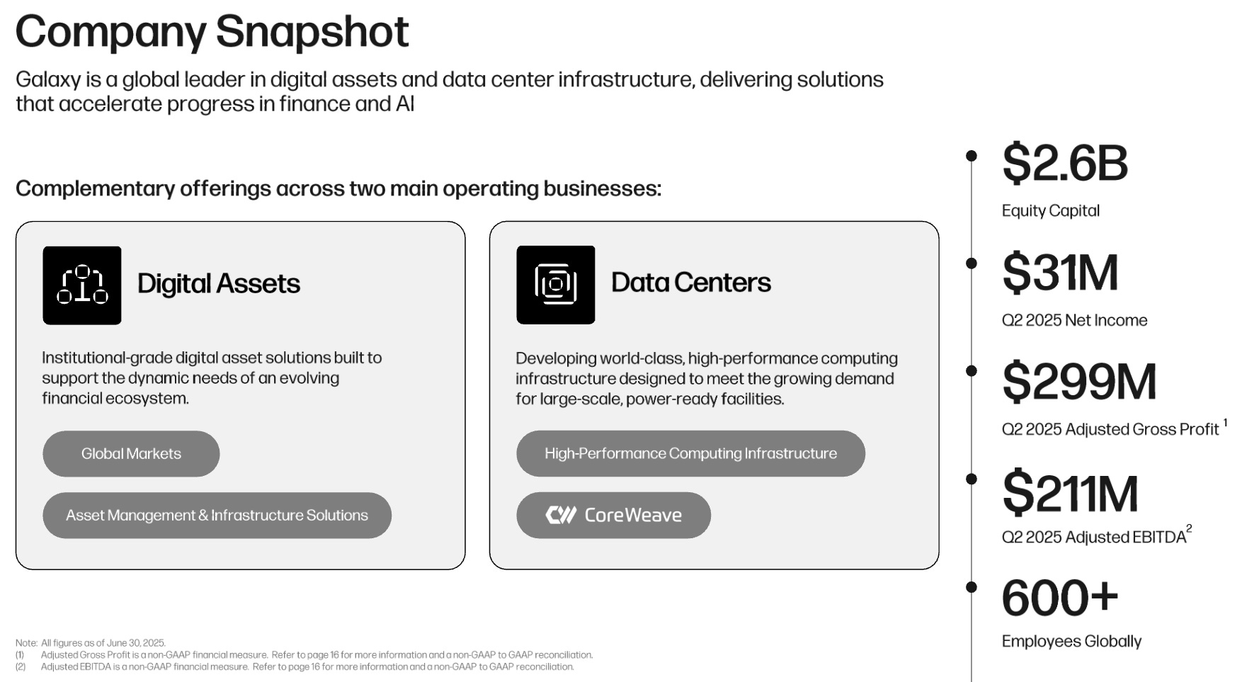 Galaxy Digital is a Crypto and AI infrastructure business and holding company that operates 3 primary segments.