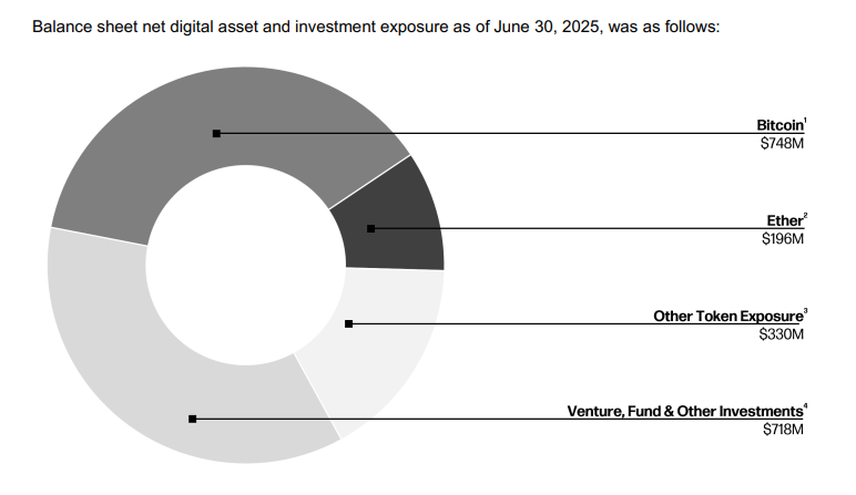 The bulk of its holdings however, sits in digital assets, with the large majority being Bitcoin and Ether. This accounted for a $1.27B stake as of Q2 2025.