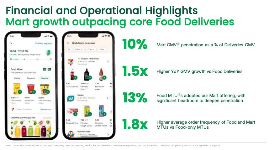 GrabMart GMV is growing 1.5x faster than GrabFood and is only at 10% penetration, there is clear runway ahead.