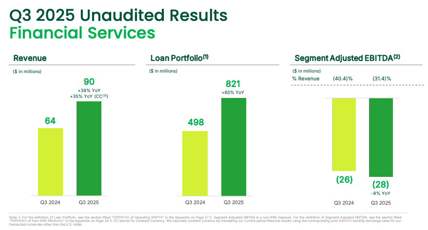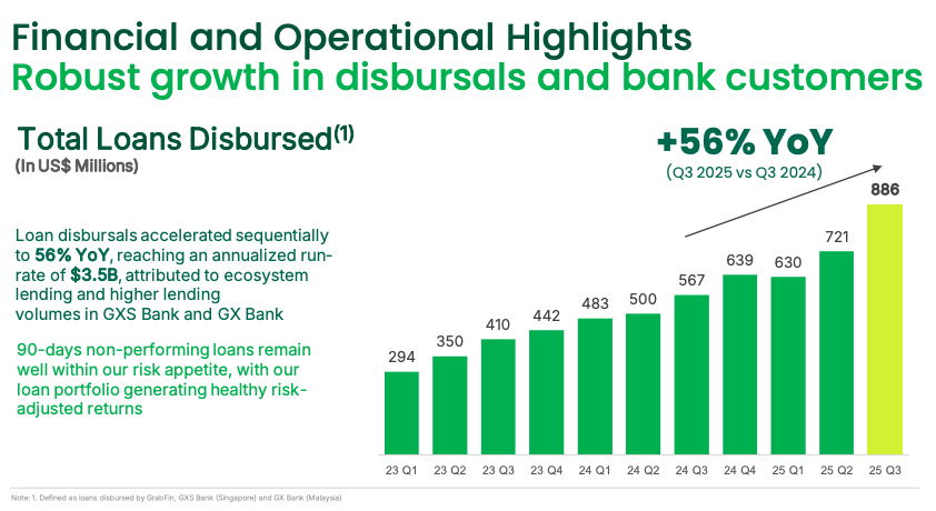 Loan book growth continued growing strongly to $821M this quarter, a 65% YoY growth. Total loans disbursed accelerated sequentially to 56% YoY, reaching an annualised run-rate of $3.5B during Q3.
