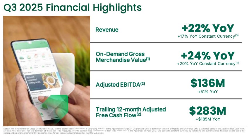 Grab reported Q3 2025 Earnings after the market close on 3rd November 2025.