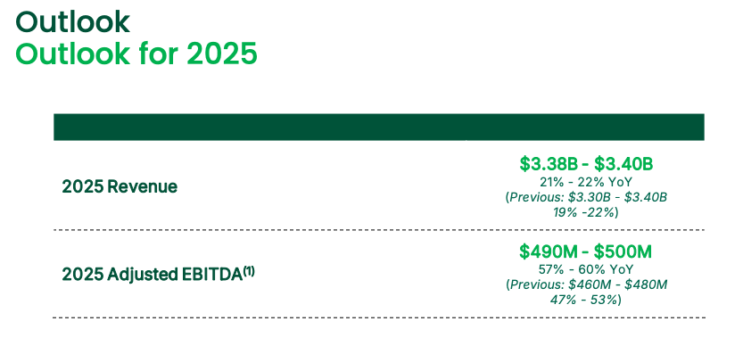 Adjusted EBITDA grew 51% YoY to $136M, with full year guidance raised to $490M-$500M. This shows sustainable profitability and management expects this profitability to continue into 2026.