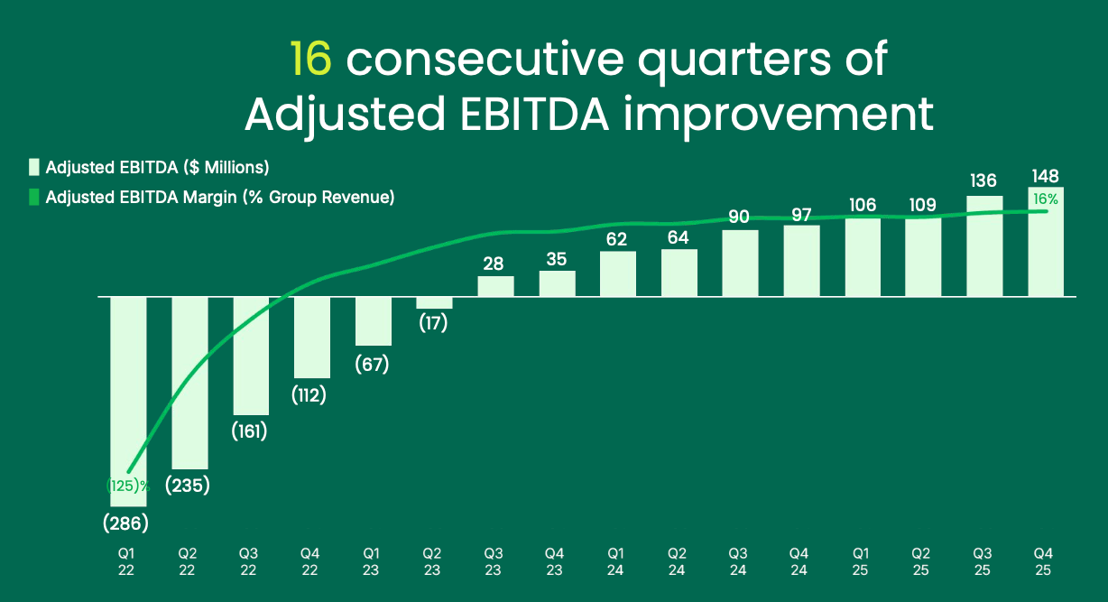 Going from -125% Adj. EBITDA margin to 16% Adj. EBITDA margin in 4 years is a major feat that Grab doesn’t get enough credit for.