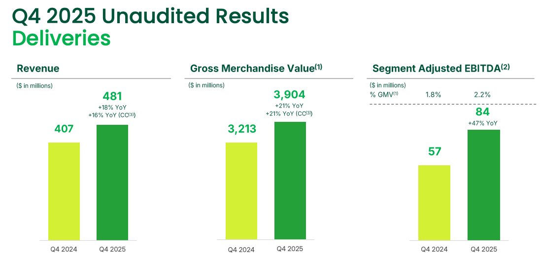 This growth has been attributed to higher contributions from advertising and gains in operating leverage. On a FY basis, deliveries segment Adj. EBITDA margin grew 35bps to 2.0%.