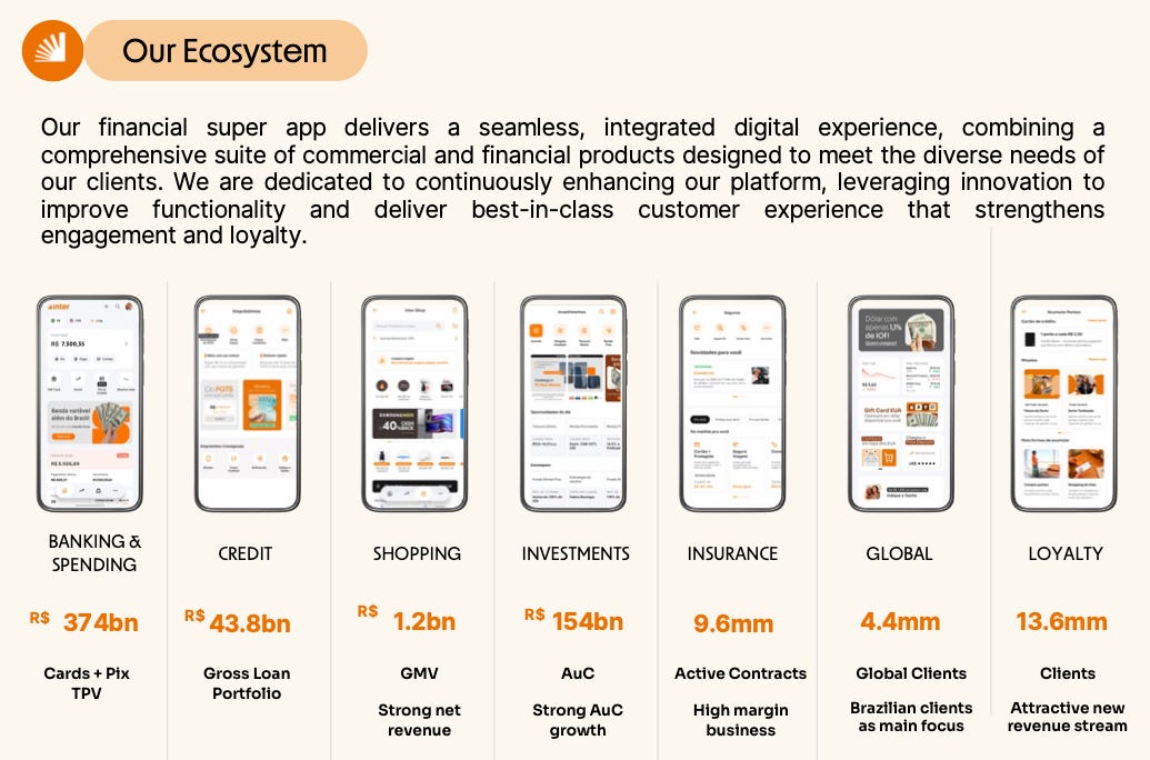 Inter’s core value proposition is providing a one-stop, all-in-one platform for a customer’s financial (and increasing non-financial) life. It is often dubbed a “super-app” akin to a financial Amazon, where users can bank, invest, borrow, insure and shop on one seamless app interface.
