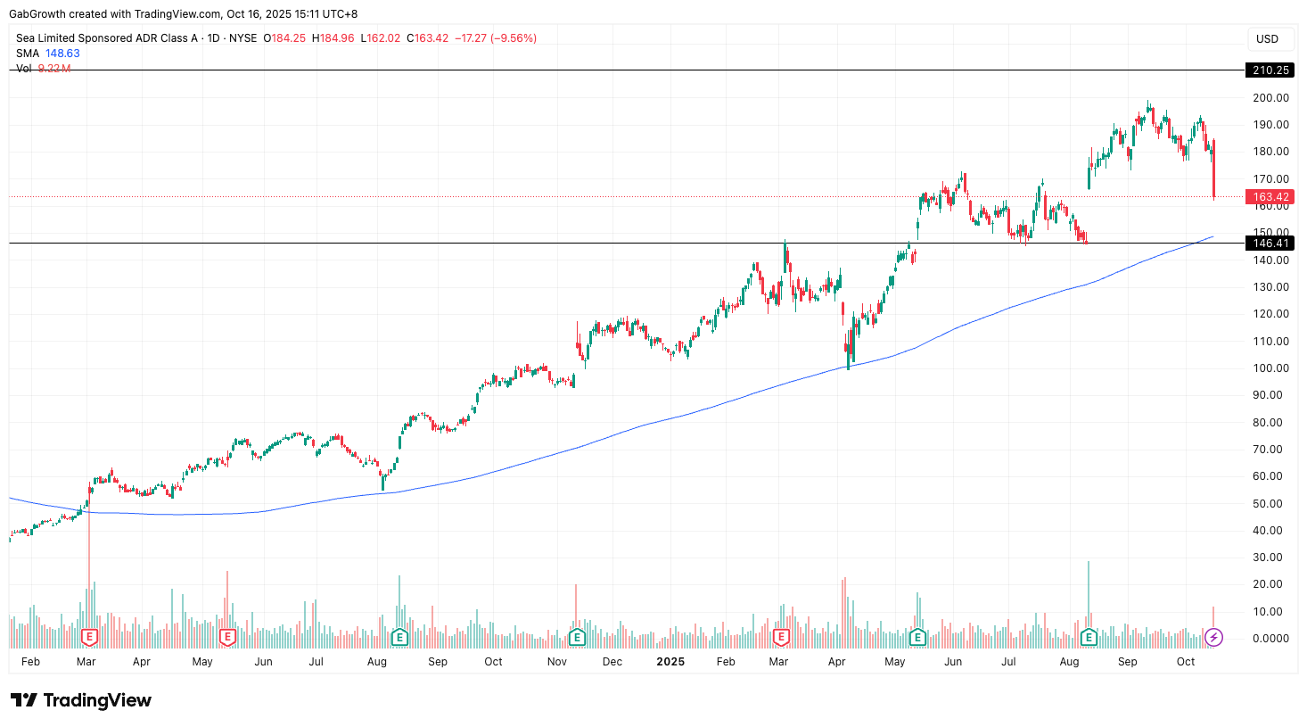 Sea’s nearly 10% plunge yesterday erased weeks of gains. Trading volume on the day spiked well above average, suggesting it was a strong wave of selling pressure.