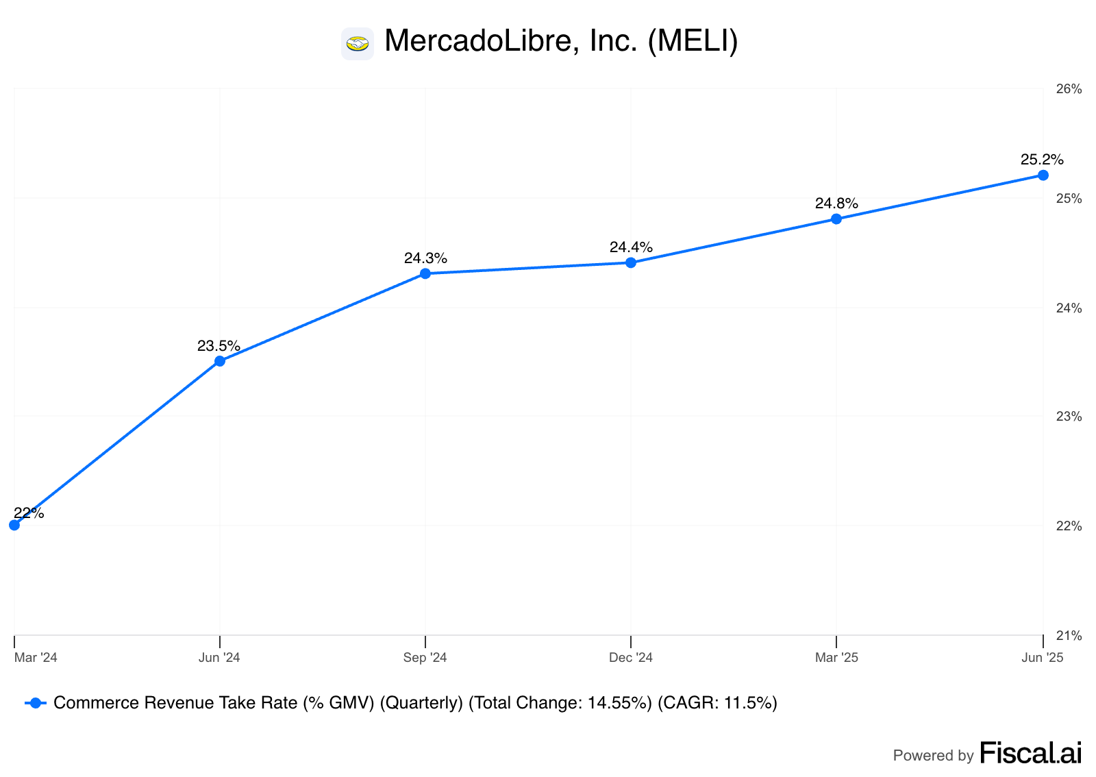 Despite the competitive pressure, it is clear that Mercado Libre has not suffered on profitability, with the business’ take rates at all-time highs of 25.2%.