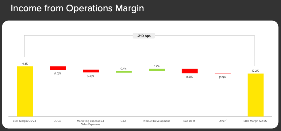 The main reasons for the fall in operating income were the increased COGS from shipping subsidies, sales & marketing expenses as well as larger provision for bad debts as the credit portfolio continues to grow exponentially.