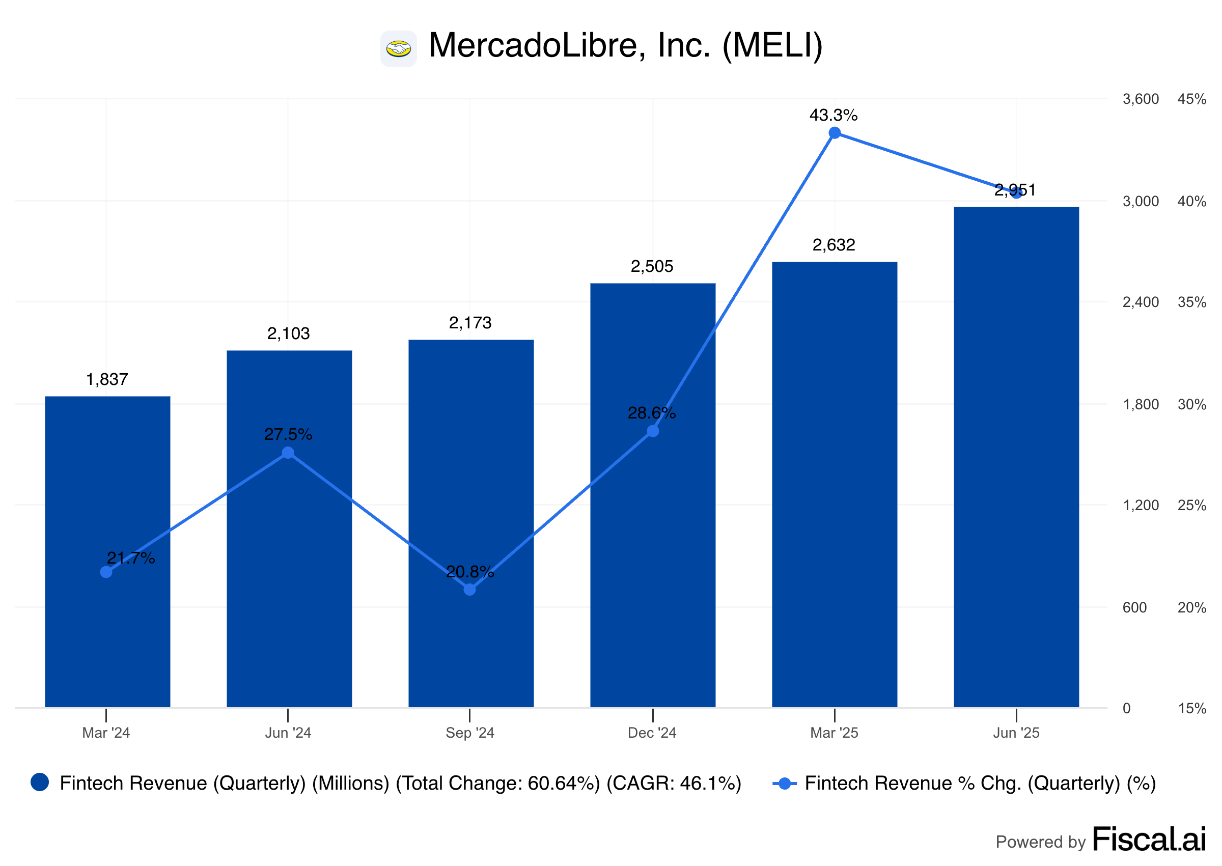 Something to take note of is that Mercado Pago’s revenue has been accelerating in recent quarters, with the company growing in the low 20s in 2024 before accelerating to over 40% in 2025.