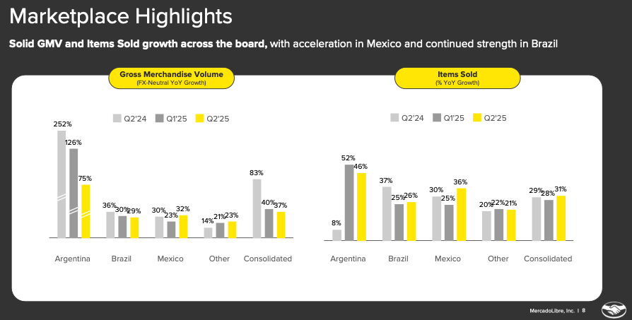 Growth was particularly strong in MELI’s key markets: Argentina saw a GMV surge of 75% FXN, GMV in Mexico grew 32% FXN while Brazil grew 29% FXN YoY.