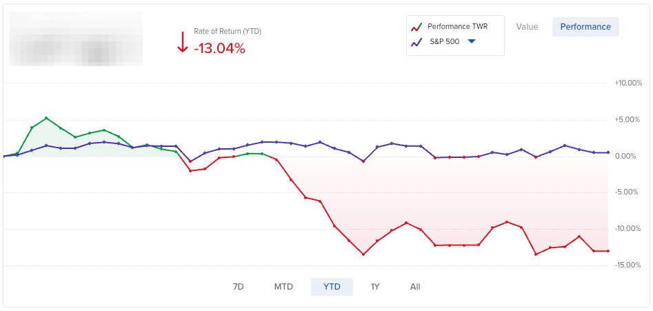 S&P 500: +0.49% (Underperformance: -13.53%)