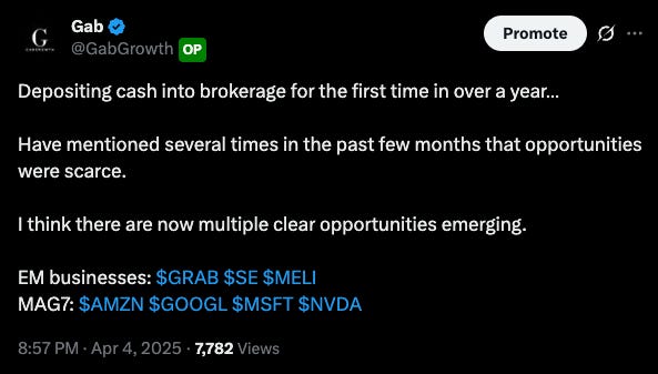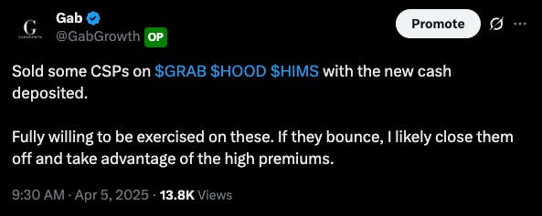 On the week of capitulation from Trump’s Liberation Day Tariffs, I deposited more cash into the account and added to my holdings while the market was panicking. Also sold some Cash-Secured Puts.
