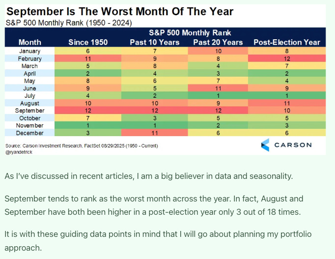 September is typically one of the weakest months of the year, and I highlighted my concerns in my previous portfolio review: