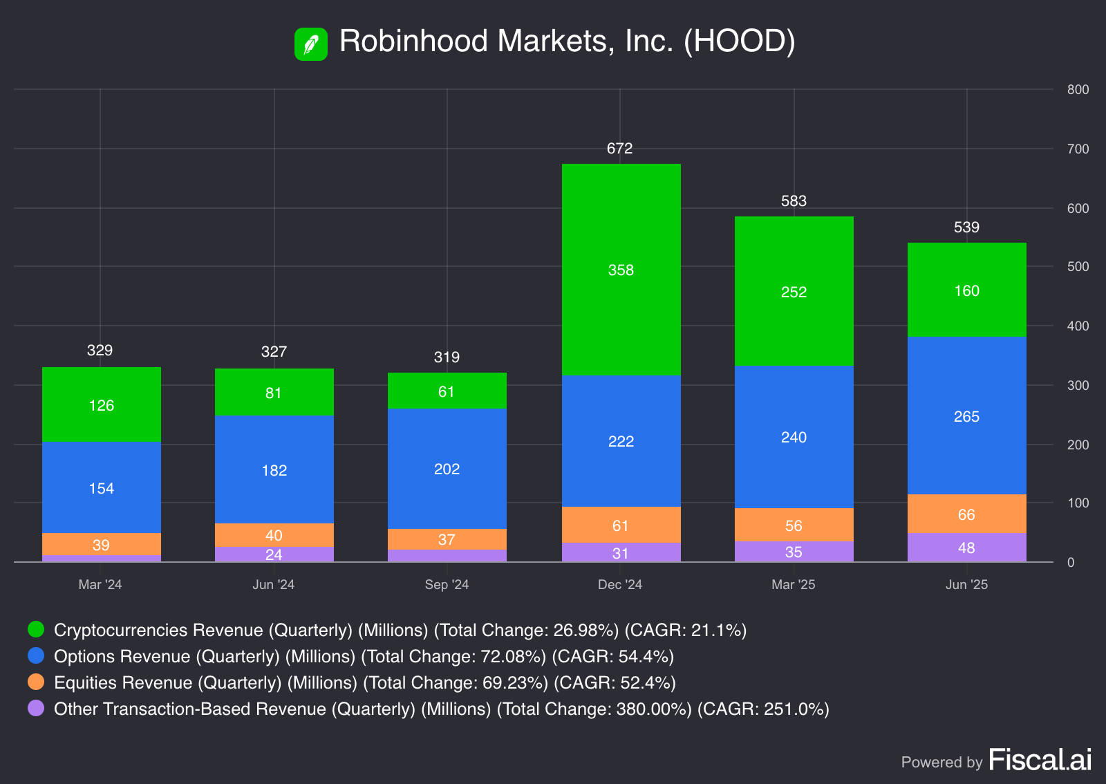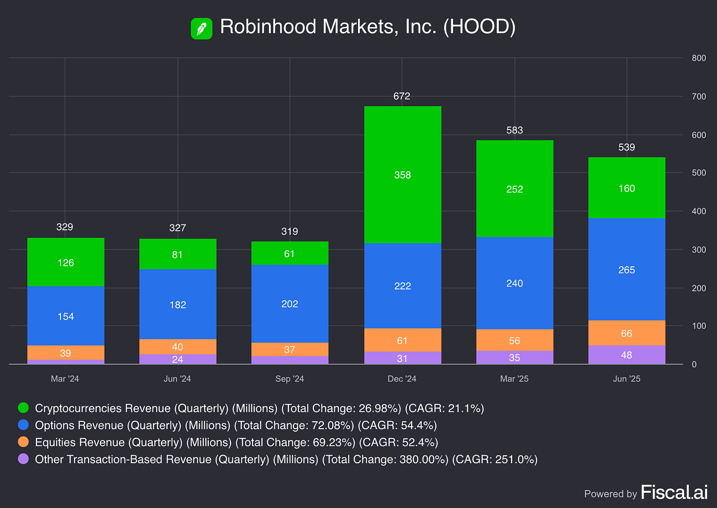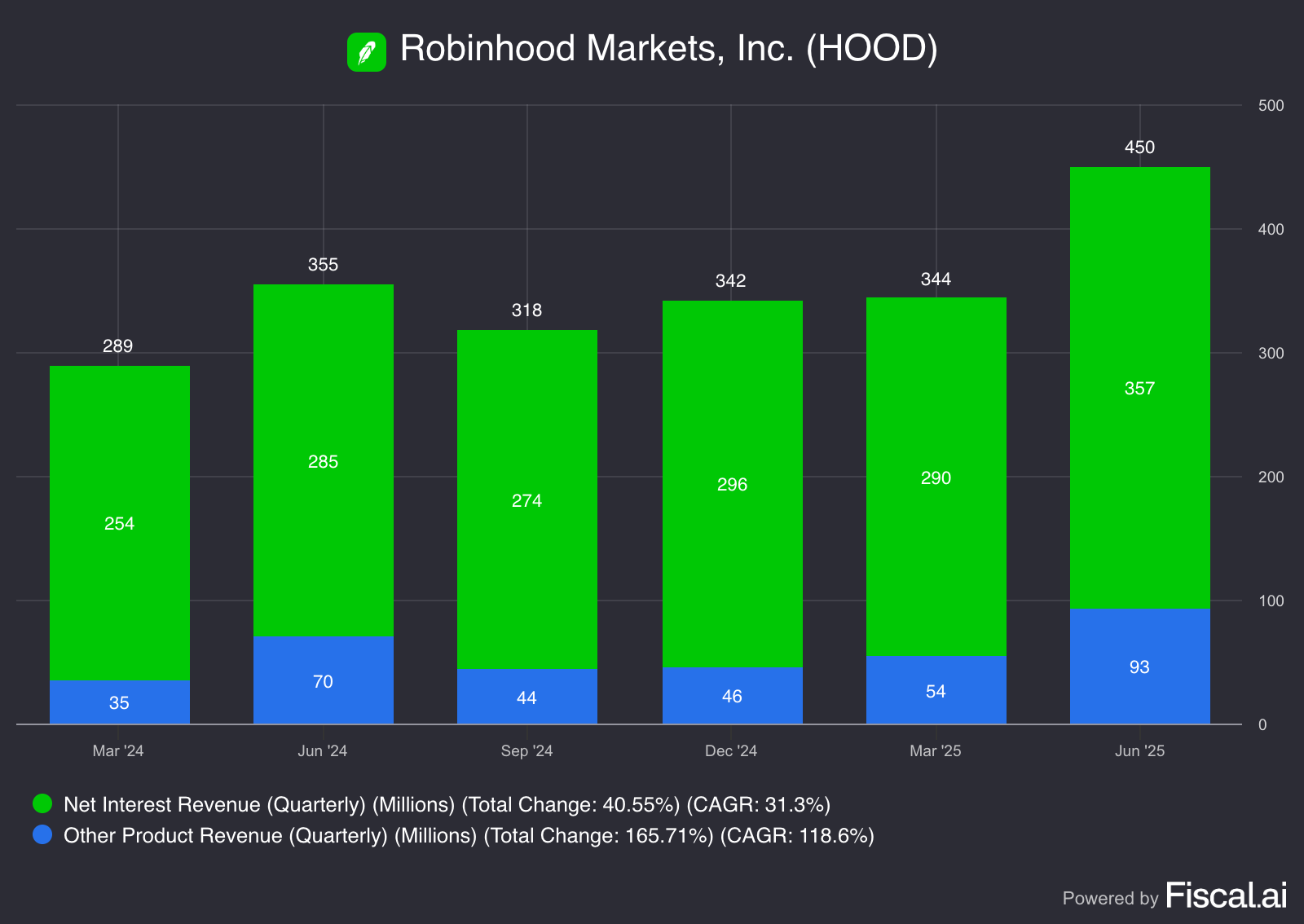 These are two vastly different income streams. Net Interest Revenue is mostly reliant on higher interest rates, which have held for the past 2 years. In my opinion, this is one of the key areas of concern for Robinhood shareholders, as rates will inevitably come down in the next few quarters to years.