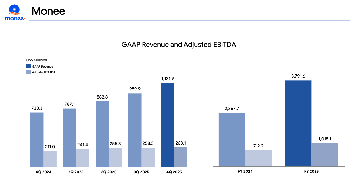 GAAP revenue for the quarter came in above $1B for the first-time. Adjusted EBITDA continued climbing, albeit at a low margin, owing to interest rate declines in SEA markets.