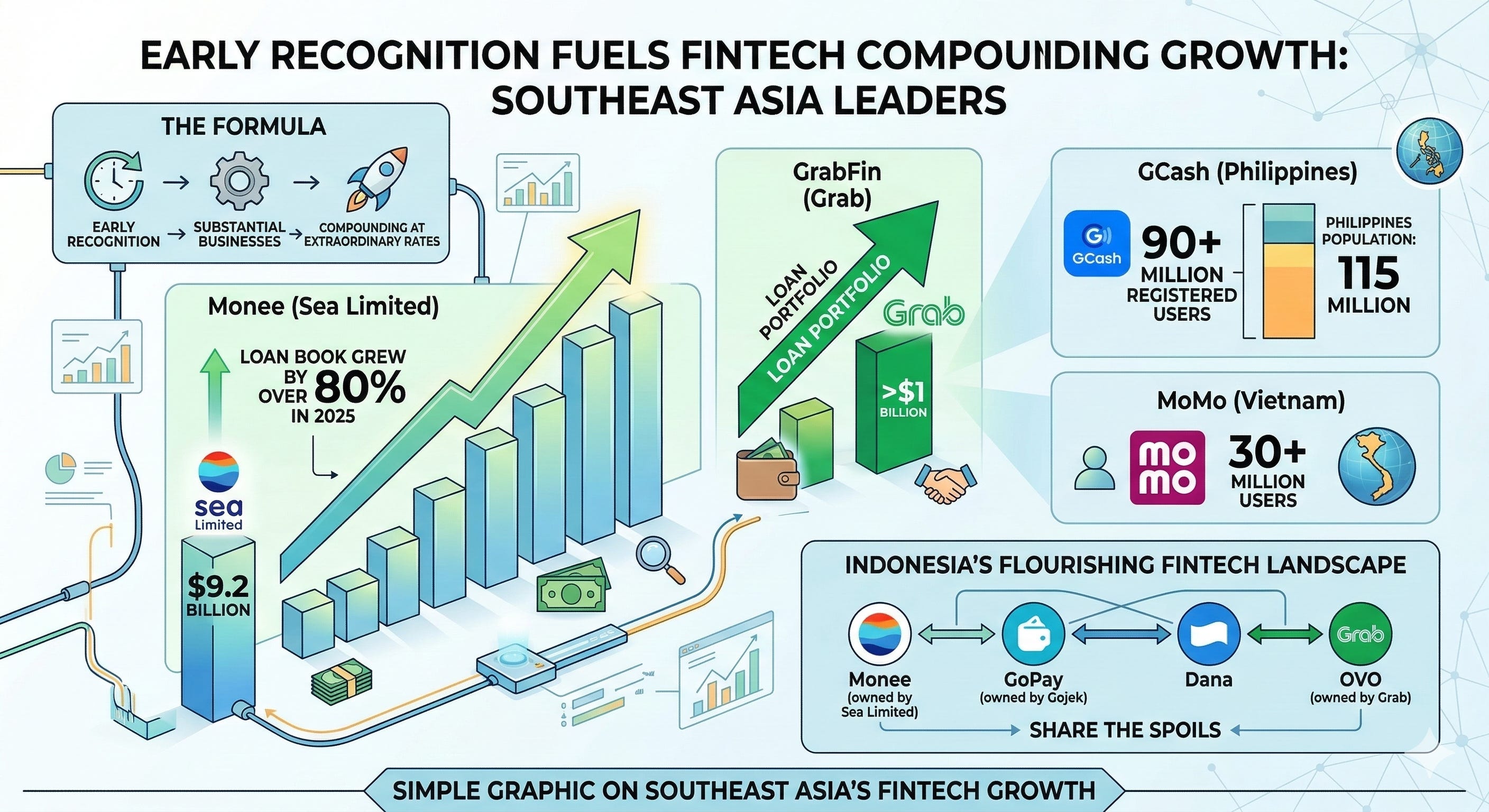Monee, Sea Limited’s FinTech arm, grew its loan book by over 80% in 2025 to reach $9.2 billion. GrabFin, Grab’s FinTech arm ended the year with a loan portfolio larger than $1 billion. GCash has over 90 million registered users in the Philippines, a country of 115 million people. MoMo in Vietnam has over 40 million users while Indonesia has a flourishing FinTech landscape with Monee (owned by Sea Limited), GoPay (owned by Gojek), Dana and OVO (owned by Grab) sharing the spoils.