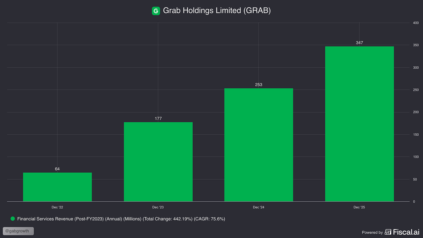 Revenues have grown at a 75.6% CAGR since 2022. However, Grab’s financial services segment remains unprofitable with a FY2025 adjusted EBITDA of -$110M. This is in comparison to Monee’s FY2025 adjusted EBITDA of $1.02B.