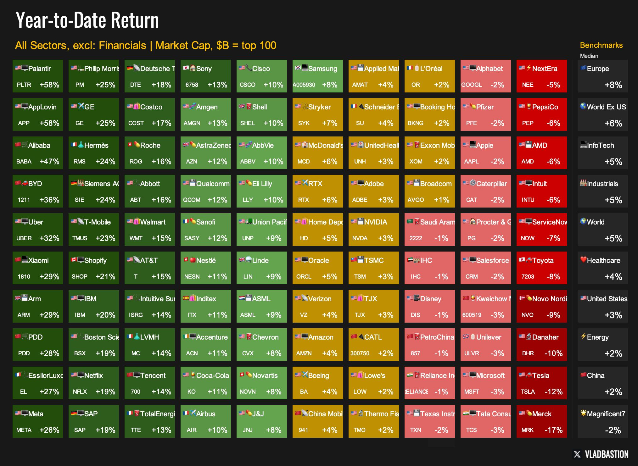 PDD has had an extremely strong run this year, with the stock up 28% YTD. It is the 8th best performer of the top 100 stocks by Market Cap.
